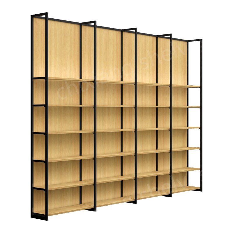 Grocery store general metal and wood shelves